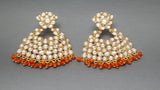 Item Name - Beautiful Indian Bollywood Orange Kundan Pearls Earring Set.